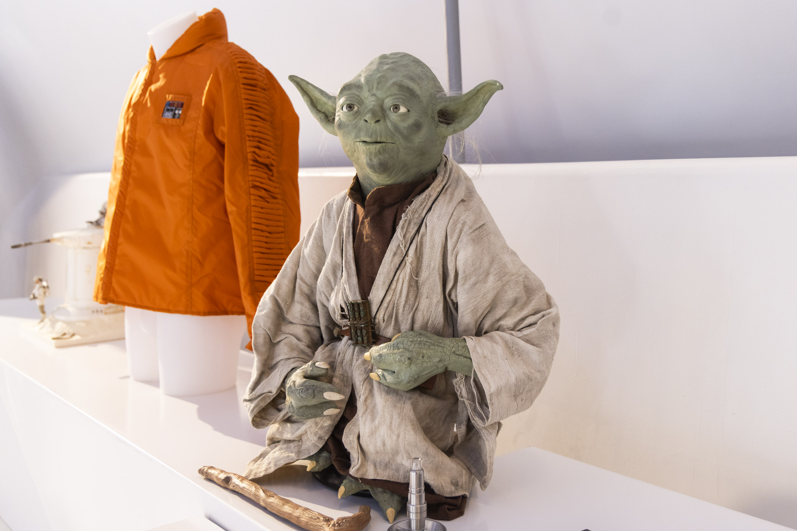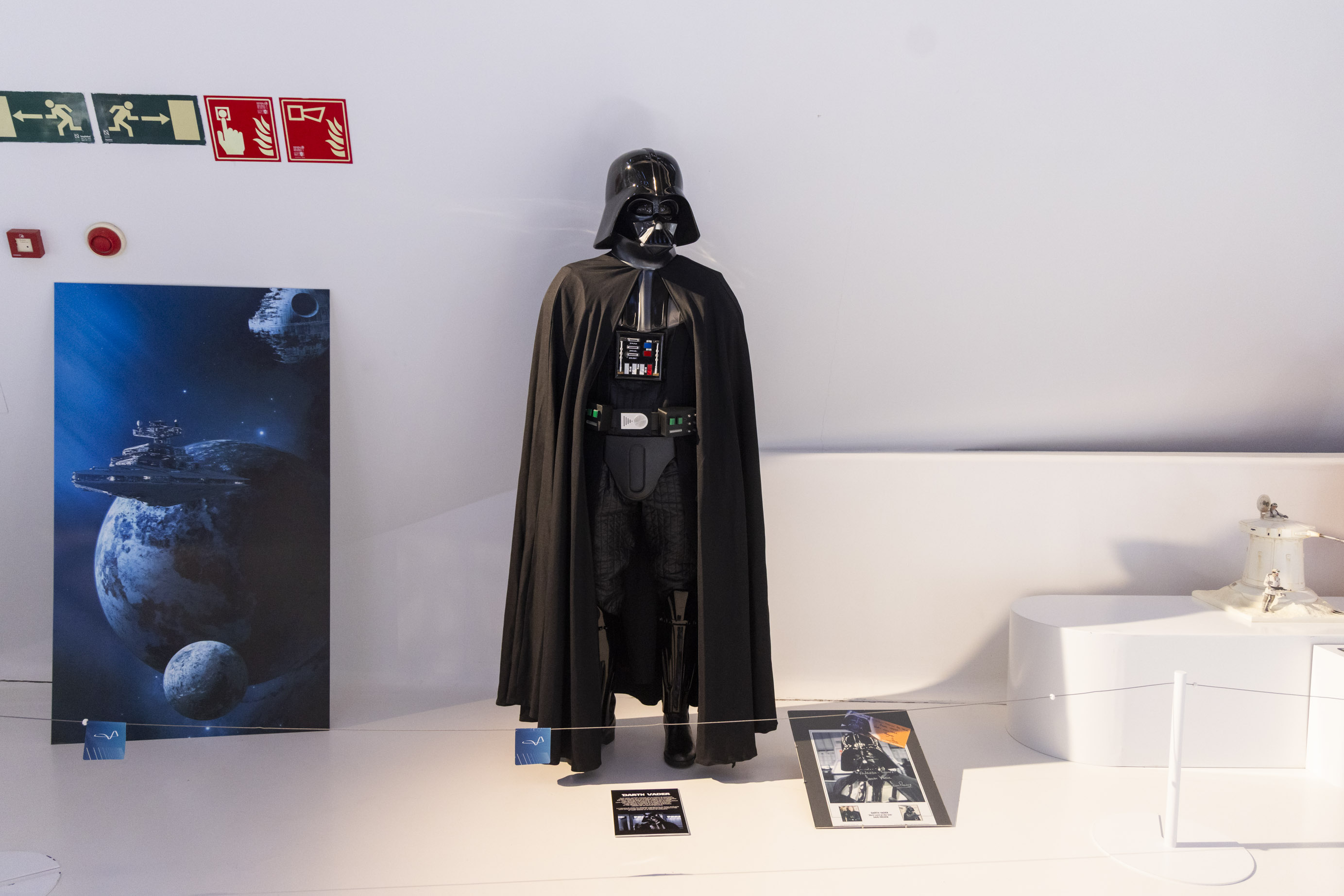 Además, se exhiben 16 vitrinas con material original procedente de los rodajes: bustos, storyboards, autógrafos, maquetas, pósters y piezas únicas con certificado de autenticidad, entre las que destacan un traje original de 1977 y un fragmento de la mismísima Estrella de la Muerte.