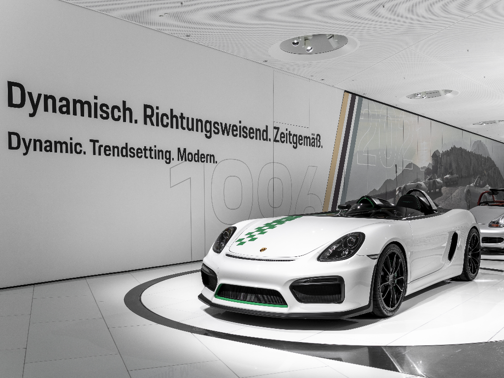 Además, a partir del 16 de mayo, el Museo Porsche mostrará el 984, un prototipo pequeño y ligero que marcó el rumbo del concepto roadster en Porsche. Una de sus particularidades es el motor instalado bajo el panel del suelo. Otra de las piezas expuestas es el Porsche 914/4 de 1975, uno de los biplaza de mayor producción, con casi 120.000 unidades. El Museo Porsche mostrará el nuevo desarrollo del motor bóxer refrigerado por agua mediante una maqueta del Boxster S 986 cortada transversalmente, para ver su funcionamiento en detalle. Otro invitado especial es el Boxster Bergspyder, un deportivo monoplaza basado en la tercera generación, con la denominación interna 981. Este vehículo goza de la condición de prototipo hasta el día de hoy y evoca al 909 Bergspyder de 1968, que, con 384 kilogramos, es el coche de carreras más ligero jamás construido por Porsche.